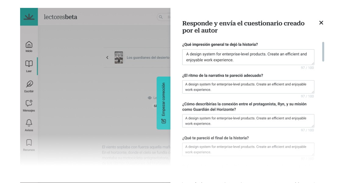 LectoresBeta creates an interactive community where authors receive valuable input and readers engage deeply. The platform is designed to facilitate structured and insightful discussions, making the feedback process more efficient and enjoyable. Key features include: